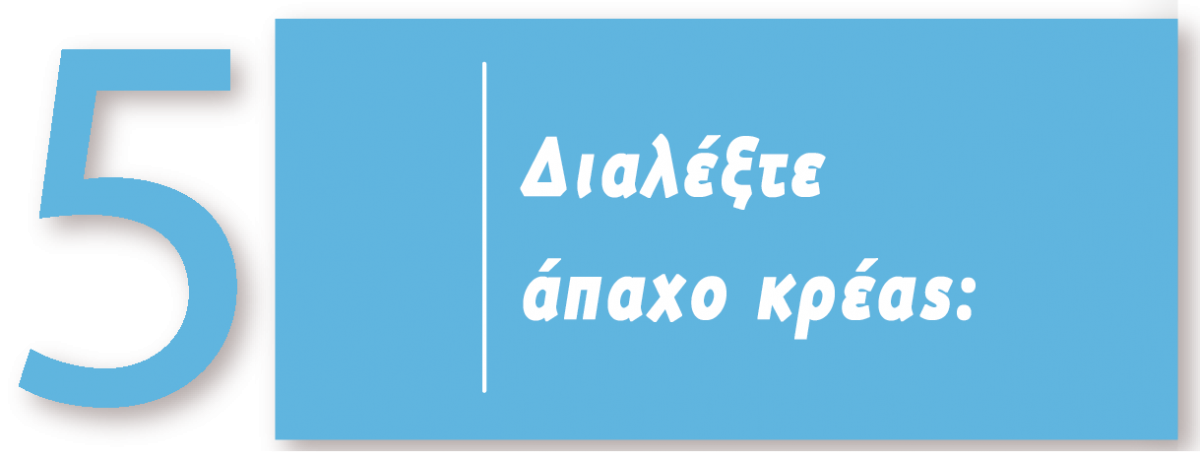 Αυτή είναι μια σύσταση που όλοι την γνωρίζουν. Όλοι έχουν ακούσει ότι το άπαχο κρέας (πουλερικά χωρίς δέρμα, άπαχο χοιρινό και μοσχάρι) είναι προτιμότερο από τα πιο λιπαρά κομμάτια κρέατος, διότι δεν περιέχει τόσα πολλά ανθυγιεινά λιπαρά.