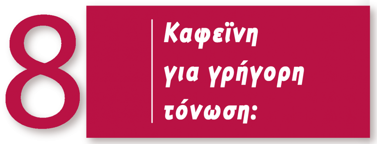 Επιπρόσθετα η καφείνη αποτελεί διεγερτική ουσία που αυξάνει την εγρήγορση και τη συγκέντρωση. Προσοχή όμως γιατί υπερβολική πρόσληψη μπορεί να φέρει ανεπιθύμητες παρενέργειες όπως πονοκέφαλο, ζάλη και υπερδιέγερση. Εκτός από τον καφέ, καφεϊνη περιέχεται και στο τσάι και στο κακάο.