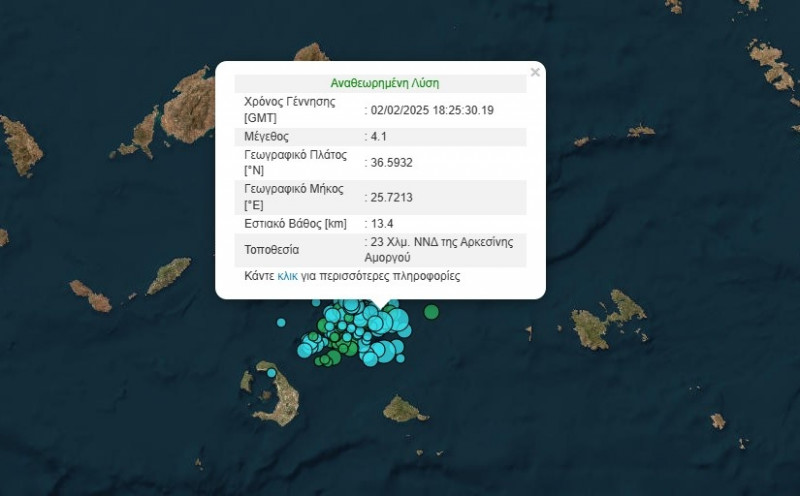 Από την πλευρά του και το Γεωδυναμικό Ινστιτούτο του Αστεροσκοπείου Αθηνών δίνει το σεισμό στα 4,4 Ρίχτερ.